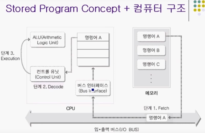 위의 과정을 거쳐 HDD에 저장된 프로그램 실행파일은 다음의 세가지 절차를 통해 CPU에서 연산이 이루어진다.