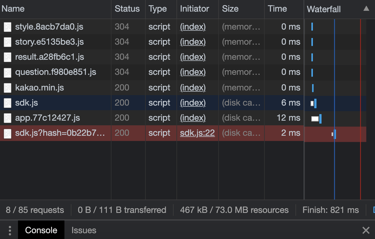 (왼쪽) 번들을 하지 않았을 때 (오른쪽) 번들을 한 뒤 - 최초 요청 완료 시간이 더 빠르다 참고