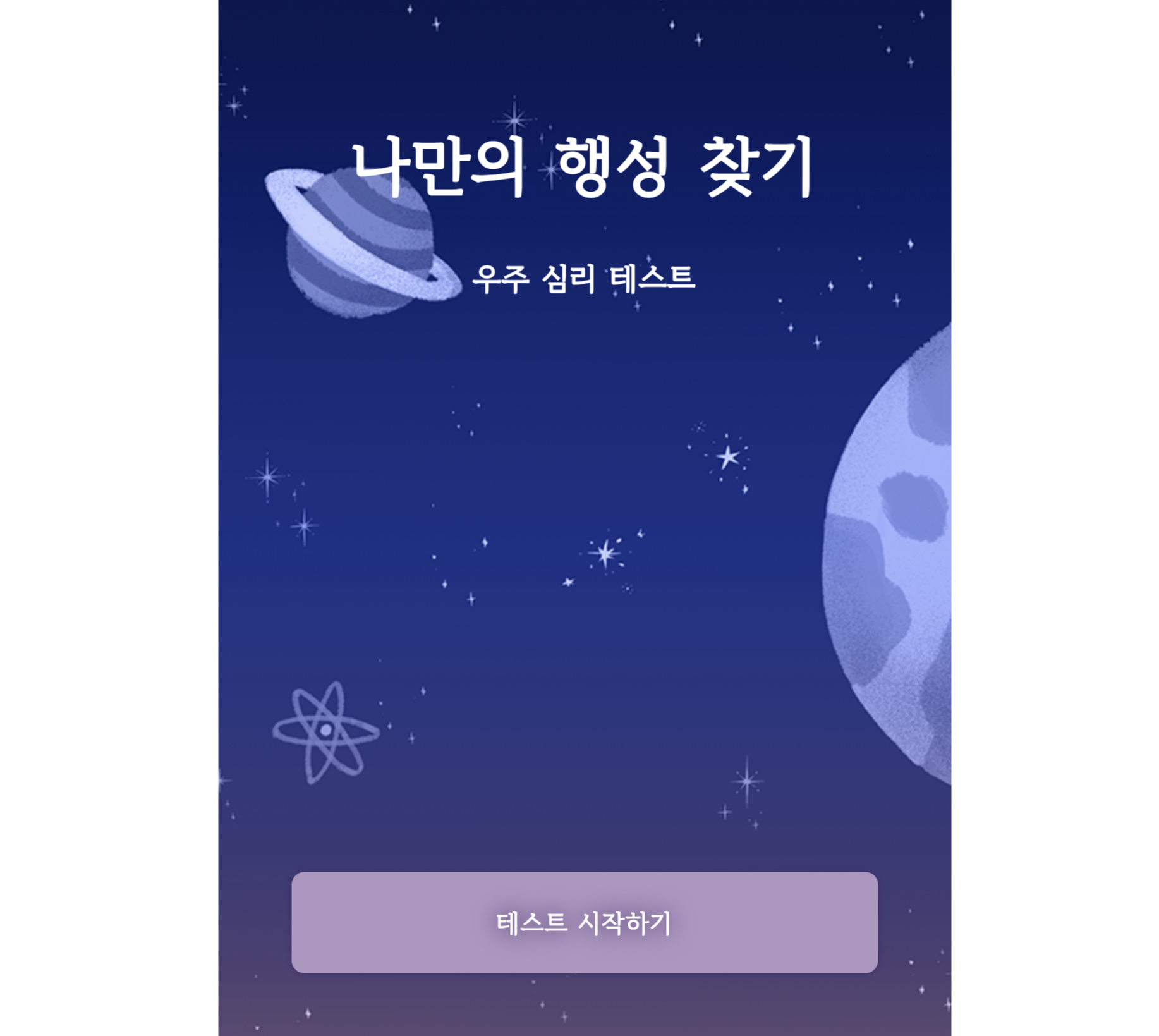 2주정도 걸려서 제작 한 우주 여행 심리테스트 페이지 🙂