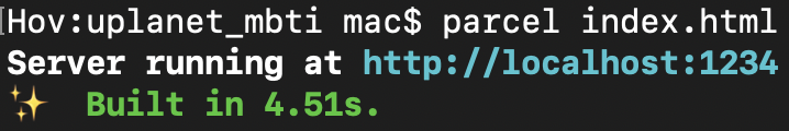 자, 이제 parcel이 설치 되었다. 터미널에 아래와 같이 입력하면 번들링이 시작된다.