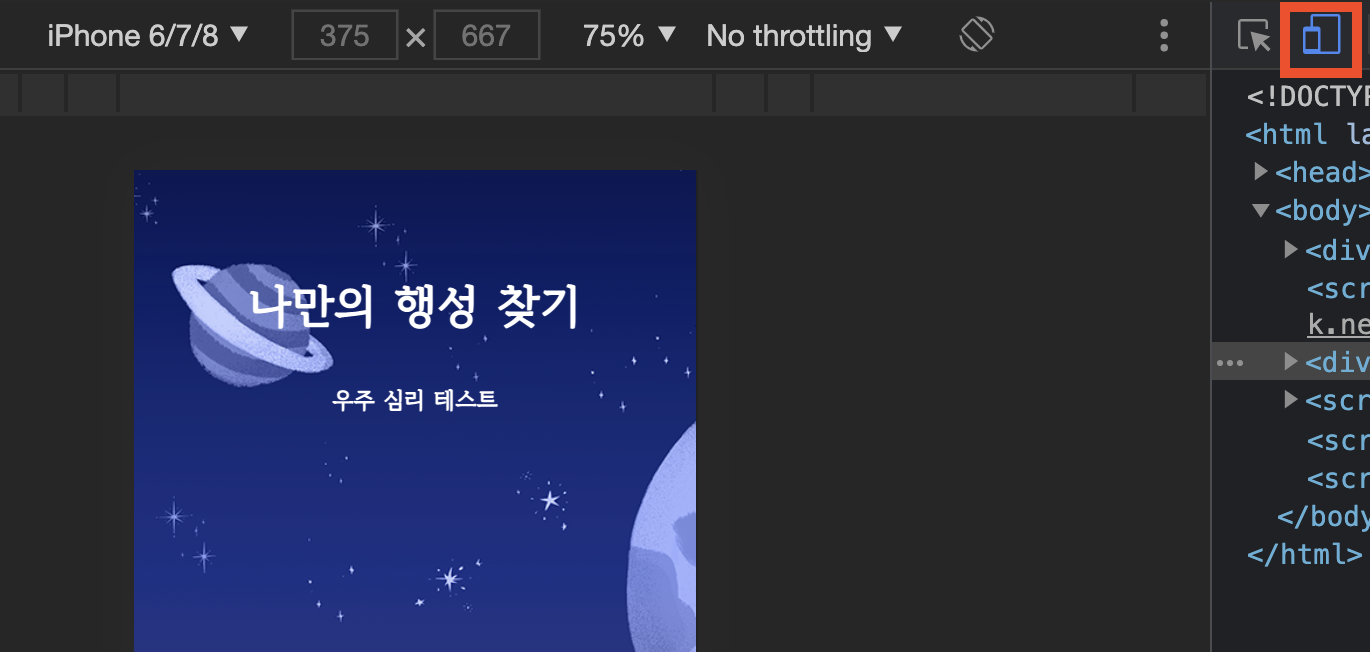 처음에 우리는 이 모드로 계속해서 확인 하면서 화면에 딱 맞는 크기로 페이지를 구현 하려고 했다.
