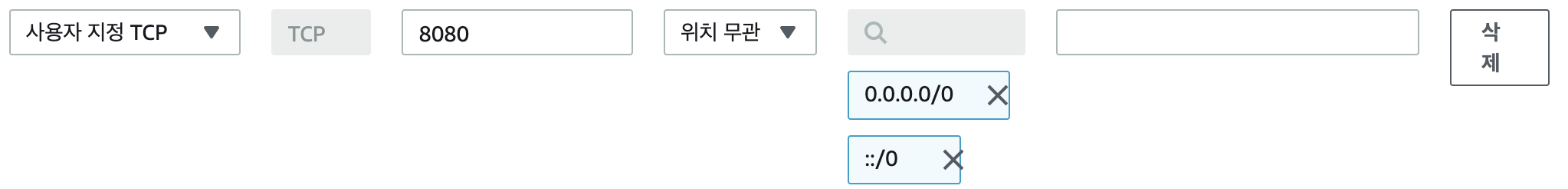 위와 같이 출력이 된다면 정상적으로 설치가 되었다는 뜻이다 🙂 이제 내 ip로 들어가기 전에, ec2 보안그룹의 설정을 변경해, 8080포트에 대한 인바운드 규칙을 하나 생성해준다.