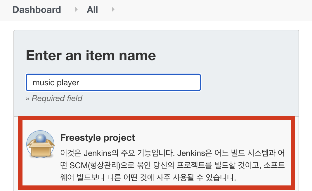Freestyle project 유형의 새 프로젝트를 만든다.