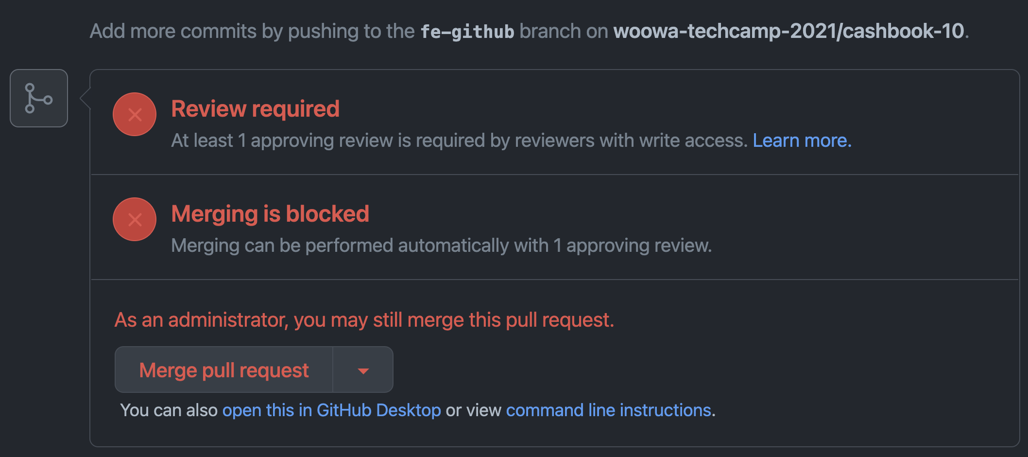 누가 Approve해주기 전까지는 Merge가 되지 않는다. (심지어 Reject 할수도 있다.) Stash