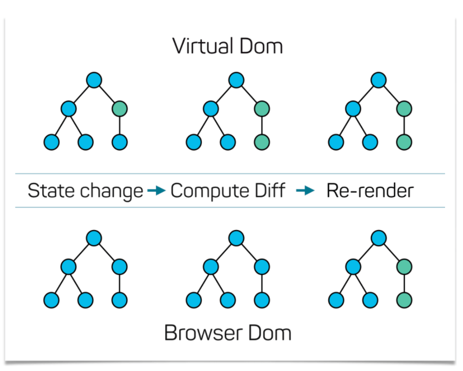 브라우저에서 가장 큰 성능을 좌우 하는 부분이 바로 렌더링인데, 가상돔은 이 렌더링 부분에 있어서 최적화를 하기위한 기술이다. DOM의 변화가 일어나는 부분만을 체크해서 해당 element만 바꿔 줘서 페이지에 변화가 일어날 때 마다 DOM의 업데이트를 최소화 시키는 방법이다.
